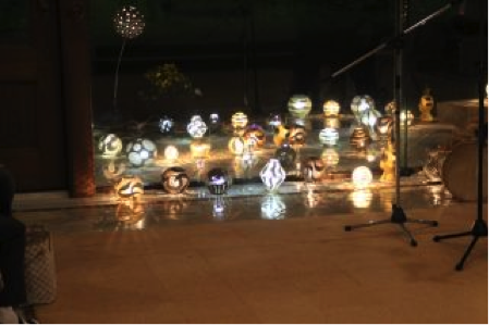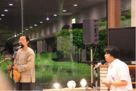 夕食後の音楽イベント。明かりは伊東市在住の陶芸家、近藤宏克氏の明かりの中でのコンサートです。